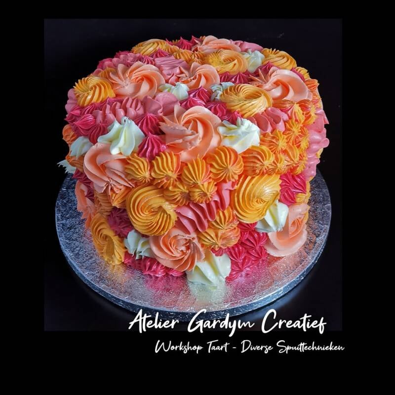 Groepsreservatie - gestapelde Taart met chocolade Raster en Bloemen