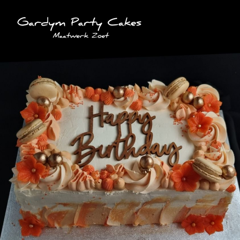 De taart is verkrijgbaar in ronde, vierkante of rechthoekige vorm.