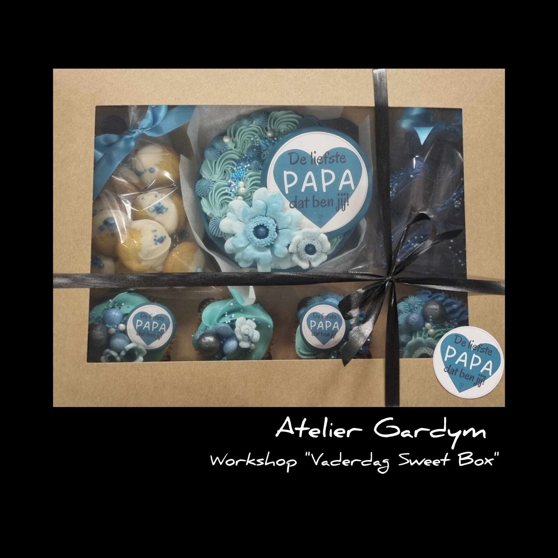 - Sweetbox 1 x biscuit + 4 cupcakes + zakje artisanale marshmallows & koekjes