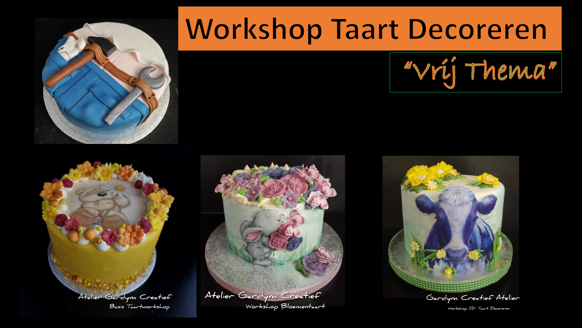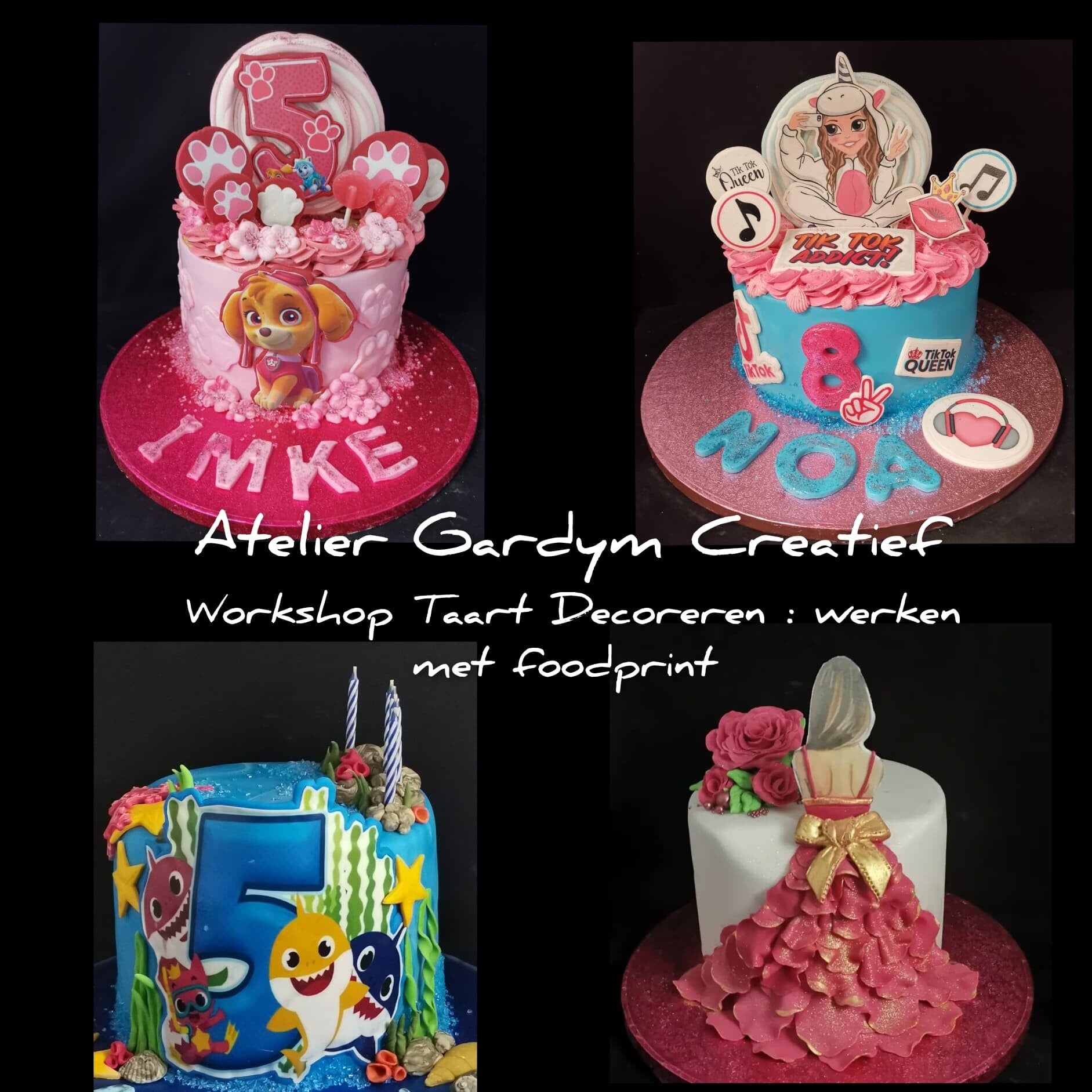 We werken de taart af thema naar keuze. Beginners brengen annimatie in een foodprint.