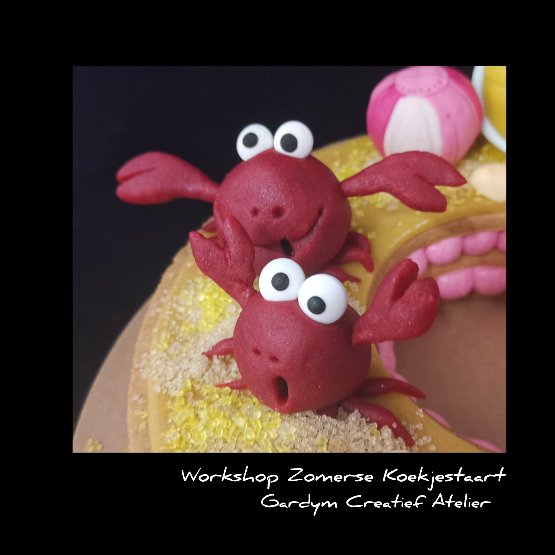 We decoreren de taart met zomers boetseersel : zon, slippers, ijsje, ...