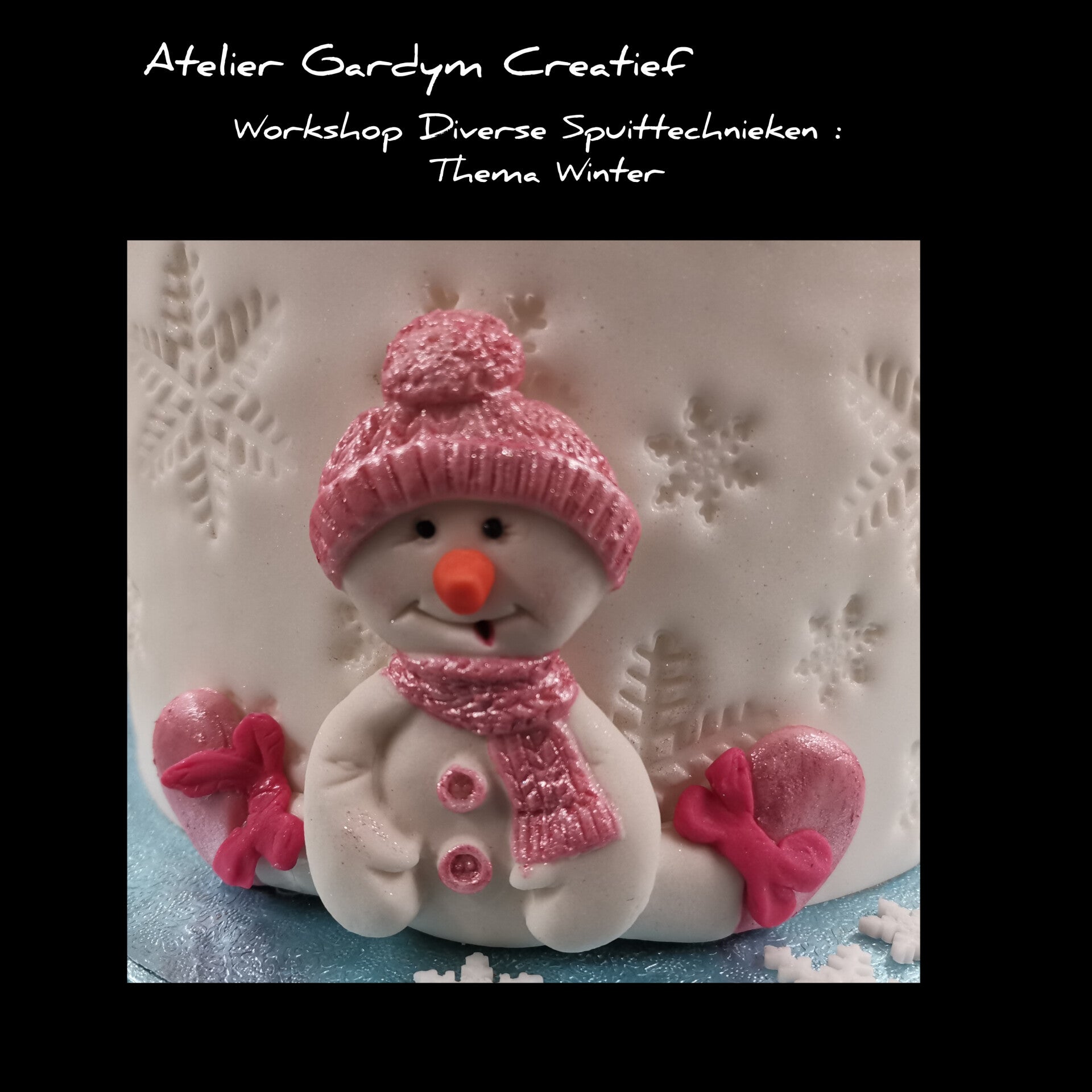 We decoreren de taart met diverse spuittechnieken en werken ze af naar een winters thema