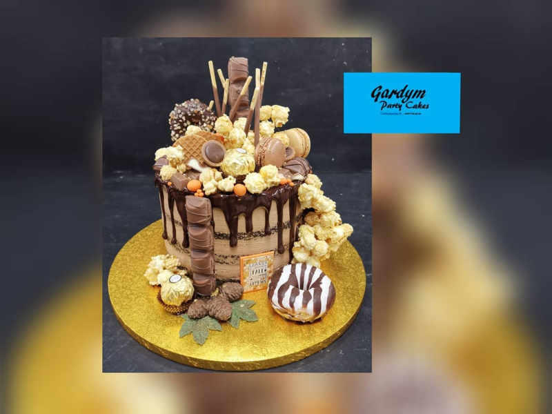 Groepsreservatie - gestapelde Taart met chocolade Raster en Bloemen